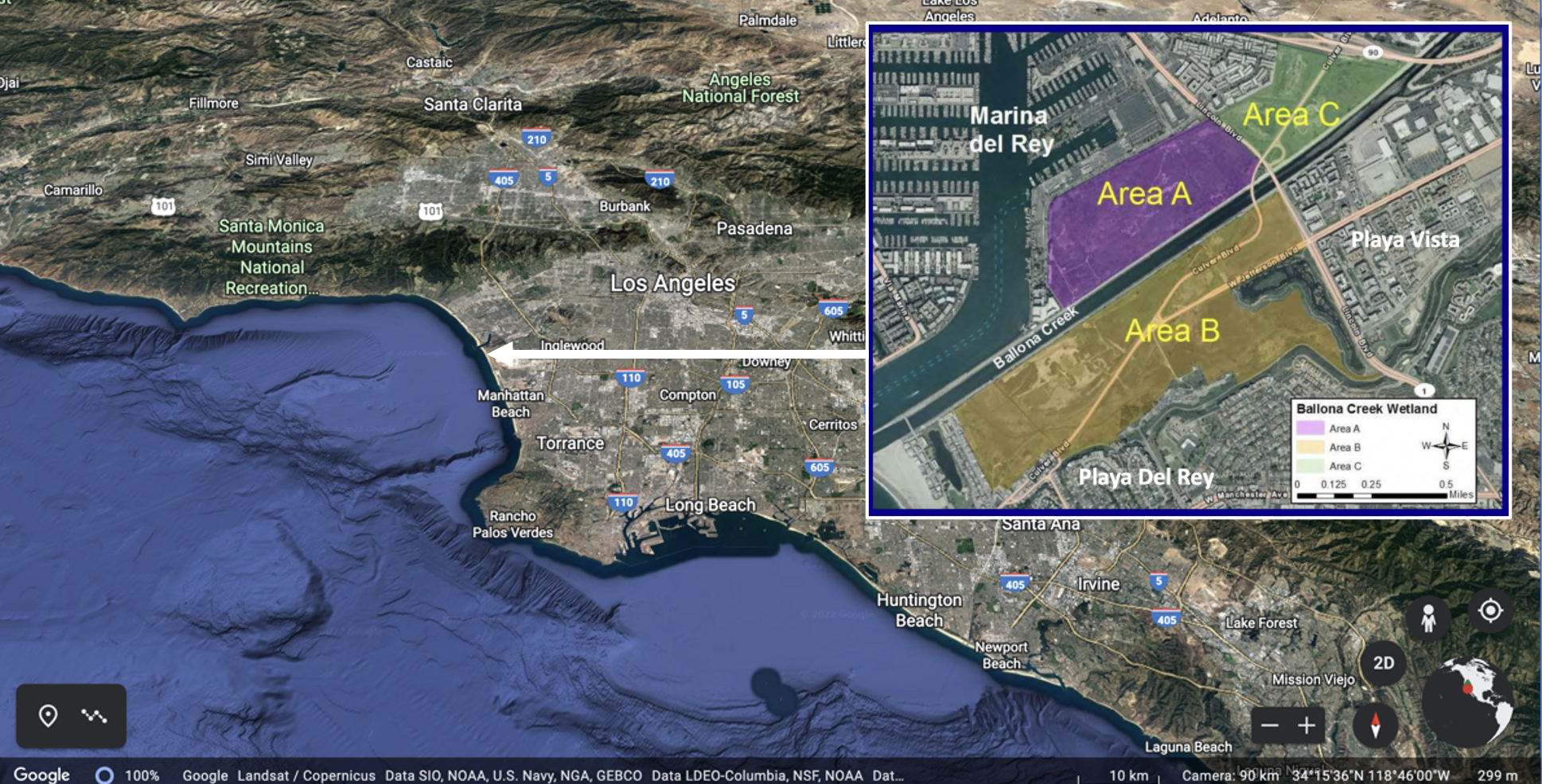 Source: Google Maps and the Ballona Wetlands Restoration Project website.