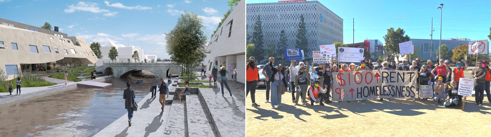 While nearby wealthy communities benefit from the rising property values that in part drive homelessness, they don’t build their fair share of affordable or supportive housing, exemplified by NIMBY (“not in my backyard”) opposition to the Venice Dell Community. Just north of the wetlands abutting the Venice Canals, an empty city-owned parking lot was to be turned into 120 to 140 apartments for people experiencing homelessness and low-income artists, developed by two respected affordable housing nonprofits and designed by an award-winning architect. After overcoming a lawsuit ostensibly brought against the project on grounds of its environmental impact and passing the notoriously protective California Coastal Commission, the affordable housing development is still being thwarted behind the scenes by Councilmember Park and city attorney Feldstein Soto (with tacit approval by LA mayor Karen Bass), according to a new lawsuit filed on behalf of three local residents, including one whose RV was displaced from the wetlands. In the absence of such projects, the unhoused will continue to be pushed to the edges of human habitation—freeway underpasses, industrial areas, waterways, and wetlands—where they sometimes infringe upon natural habitats.