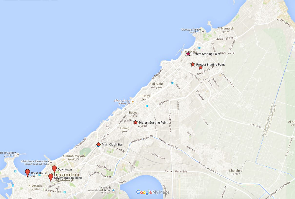 Were we to reduce an uprising to its causes, there would be no particular need to investigate the relationship between space and protest. We would only have to look at broad causal mechanisms – for instance, “frustration”, itself a consequence of “unemployment,” “corruption,” “lack of freedom,” and so on. Yet, if we look at uprisings as dynamic events and consider how localized street protests succeed in attracting people, developing and eventually mutating into mass mobilizations, then it becomes relevant to study the peculiarities of each local case. I argue here, following many others, that space matters, and that the geography, topography, and urban planning of a city directly affect the nature of (street) protest. Far more than being just the theater or the background of action, space materially frames interactions, gives them meaning, provides players (protesters and the police) with opportunities, and imposes constraints on them. I will illustrate some of these ideas with fieldwork data drawn from research I conducted in Egypt’s second city, Alexandria, since the beginning of what came to be known as the January 25 Revolution.