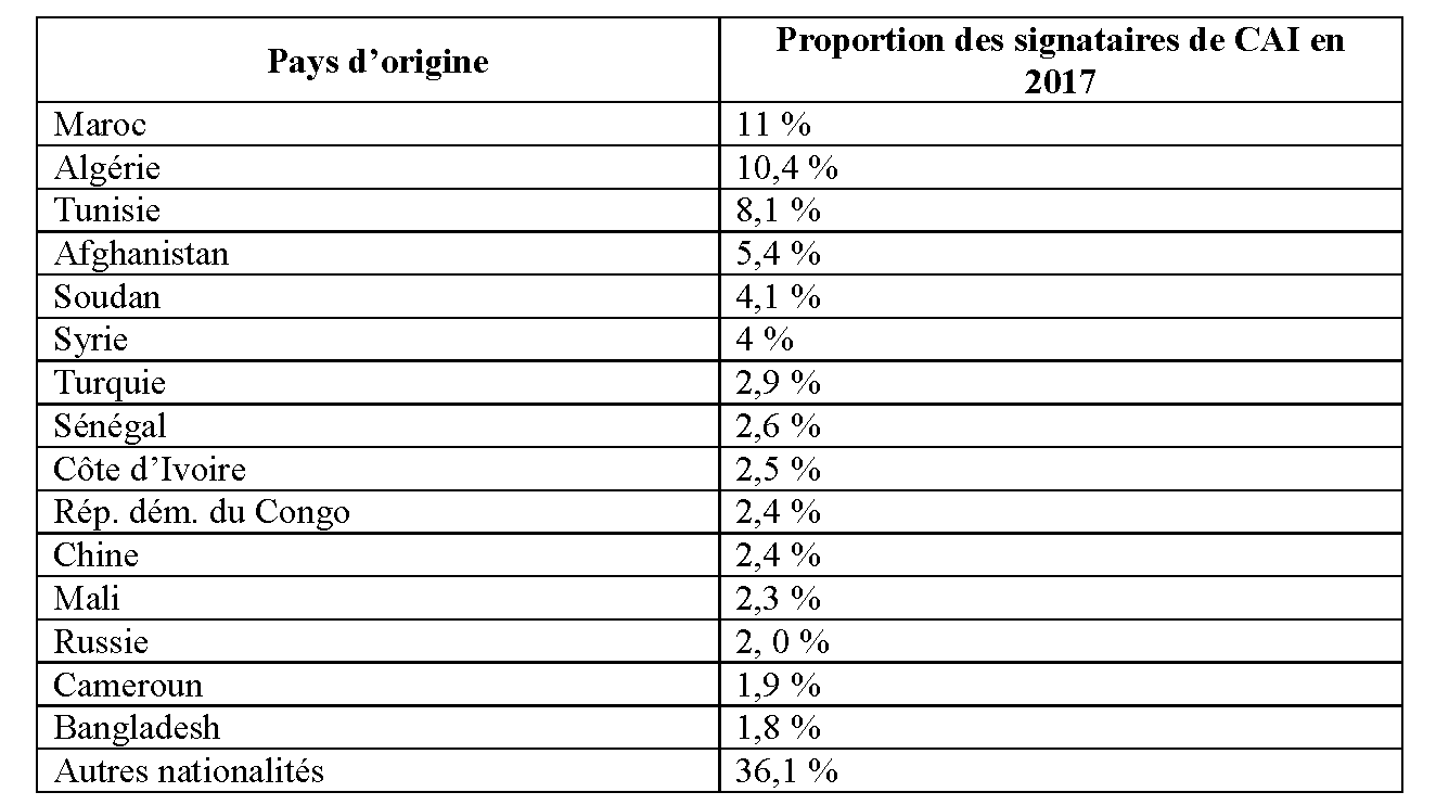 In 2017, although the “asylum” motive increased to 26.9%, the family motive—which accounts for 59% of all signatories—remains predominant (OFII 2018).