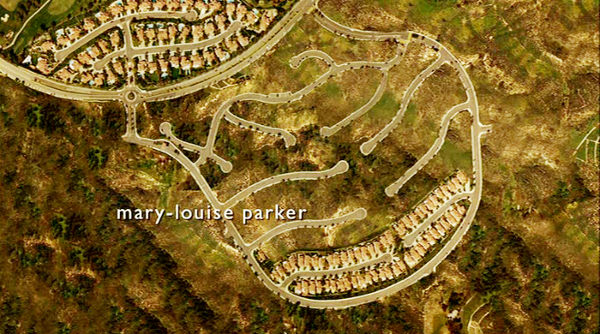 La simplicité du message a peu de choses à voir avec la série Weeds, qui ne renvoie plus du tout aux mêmes géotypes et a fortiori exprime une autre tonalité de la société américaine. Point d’exurbia dans Dallas, alors que Weeds part de là [1]. Comme dans d’autres fictions, c’est une banlieue résidentielle chic, une gated community en l’occurrence au nom bien choisi : Agrestic. Le générique est un chef d’œuvre. D’emblée le plan masse se dessine – ou plutôt se remplit – au fur et à mesure que s’assemblent ces little boxes (petites boîtes) de la chanson de Malvina Reynolds, Little Boxes, euphémismes (renvoyant à la petitesse des existences ?) pour ce qui relève bien plutôt des luxury homes de la ville d’Agrestic, décor de la série [2]. Agrestic renvoie d’emblée à un sentiment antiurbain très fort. Les synonymes en français d’agreste renvoient au champêtre et au rustique. L’autre connotation est bien sûr celle de l’agressivité qui est la tonalité la plus marquante des relations sociales.