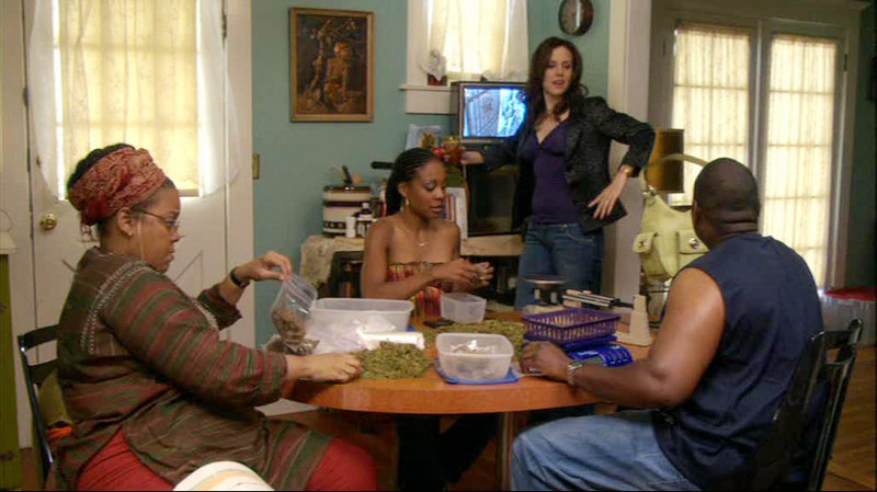 Avec une famille satellisée, la spatialité de Nancy traduit bien la difficulté (voire l’incapacité) à (re)construire sa vie. Chaque fois qu’elle croit avoir stabilisé des appuis – financiers, amoureux, professionnels, amicaux – un nouveau problème arrive. Le moment de la descente de police dans le lotissement où ils louent une maison pour lancer la plantation est un exemple typique. Son boyfriend (qui travaille à la brigade des stups) l’appelle et lui demande de regarder la télévision : il apparaît à l’écran – en train de l’appeler, donc – et dans le même temps explique fièrement à la journaliste la belle prise (« le clan des Arméniens ») qu’ils viennent de faire dans ce lotissement. Mais se rendant dans la maison, elle découvre l’ampleur du désastre avec Conrad : Sanjay et Andy dans les lieux au moment des sirènes de police ont totalement paniqué et tenté désespérément de cacher les plantes, qui s’en trouvent massacrées. Elle s’exclame, désespérée : « tout allait bien et il a fallu que… ». Un épisode et son problème (le petit ami jaloux qui veut sa part du magot attendu de la vente de la récolte, l’ex-femme qui veut récupérer sa mise et lance un privé véreux qui veut faire chanter Nancy…) chasse le précédent.