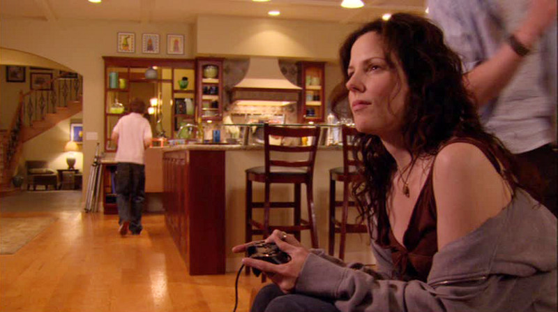 Ainsi, au début de la série, dans le fil de cette volonté d’inversion déjà mentionnée, le centre-ville noir est l’espace de la sécurité. Nancy s’y rend pour demander des conseils, voire pleurer dans les épaules rassurantes de Conrad, en cas de problèmes qui peuvent être sans lien direct avec la question de la drogue. Chaque difficulté rencontrée la mène chez Heylia, milieu stable, alors que son propre foyer semble plutôt caractérisé par une instabilité phénoménale. Ceux qui semblent les plus organisés et solidaires sont les Noirs (ils ont des relations, connaissent des gens en prison, ont de l’argent caché pour les coups durs), quand les Blancs qui rencontrent des problèmes doivent plutôt se débrouiller seuls. Nombre de conversations essentielles dans la maison Botwin se font alors que l’un, au moins, des personnages reste capté par un écran (télévision, jeu de guerre vidéo, téléphone portable), ou bien s’absente en cours d’échanges, produisant une forme d’attention non focalisée. C’est bien Heylia qui donne le conseil à Nancy d’un repas familial qui permette de réunir tout le monde et qu’elle s’efforce à une ou deux reprises d’organiser : on en perçoit alors toute l’incongruité pour les membres de cette famille qui n’en reviennent pas (« On va être une famille, même si je dois vous flinguer tous », dit-elle en colère). Aussi la fusillade chez Heylia est-elle d’autant plus insécurisante pour Nancy, alors que les Noirs y sont comme habitués, corps au sol en attendant que ça passe et répliquant à Nancy, qui veut appeler la police, qu’il s’agissait sûrement d’une intimidation de la police ! On voit donc bien le couple stabilité-sécurité vaciller et le fatalisme pragmatique l’emporter sur les croyances petites-bourgeoises.