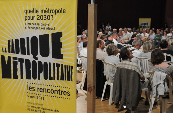 À l’issue d’une première phase d’élaboration du projet métropolitain par les services de la CUB et l’A’urba, une vaste démarche d’écoute et de dialogue avec les habitants, les « Rencontres de la fabrique métropolitaine », a été engagée au printemps 2011. L’objectif était d’enrichir le projet en le nourrissant de la façon dont les habitants perçoivent et hiérarchisent les enjeux du territoire. Une série de neuf rencontres rassemblant à chaque fois deux à trois cents personnes a ainsi été organisée en différents points du territoire de la communauté urbaine.