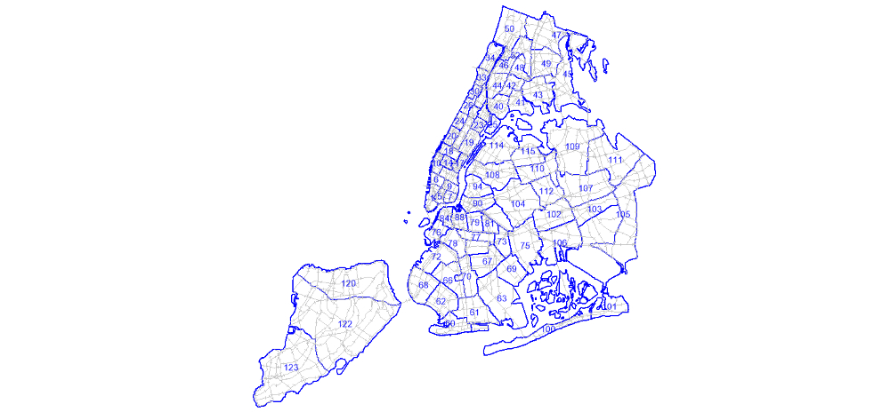 NYPD precincts overlap with the city’s 71 community districts, which are compact geographic areas corresponding to groupings of neighborhoods (Figure 1). Each community district is represented by a community board. While they are included in some government processes like rezoning, and are consulted for local NYPD leadership appointments (Gartland and Tracy 2021), community board members are appointed, not elected, and their opinions are not legally binding. Precinct community councils, while more targeted towards police–community relations, are volunteer-based, with even less formal power. Beyond precincts, the NYPD uses CompStat, a mapping-based crime data program, to structure its work and distribute resources, coding urban space in terms of crime.