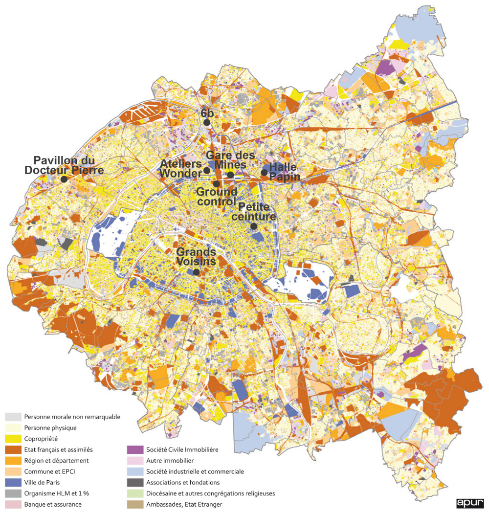 Faisons d’abord le constat que ce type d’occupation prend majoritairement place sur des emprises de grands propriétaires, majoritairement publics. Les administrations et les opérateurs publics sont à la fois les plus grands propriétaires fonciers et immobiliers et d’importantes agences immobilières, puisqu’ils acquièrent et cèdent beaucoup de propriétés. Entre réformes néo-managériales et politiques d’austérité, ces administrations et ces opérateurs réduisent leurs stocks immobiliers. Sans qu’elle soit exclusive dans le gouvernement de leurs propriétés, ils adoptent une gestion dite « active », c’est-à-dire suivant des critères financiers et des logiques budgétaires (Adisson 2015 ; Artioli 2016). Ainsi, le patrimoine immobilier et foncier n’est plus seulement perçu d’un point de vue fonctionnel, comme le support de leurs activités. Il est également envisagé comme une source de coûts (il est dispendieux d’entretenir des bureaux et de gardienner des terrains) et, potentiellement, de revenus (s’ils sont loués ou vendus, les biens immobiliers et fonciers peuvent apporter des recettes [4]).