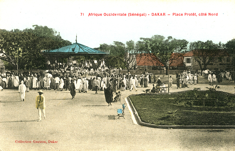 In the first part of the book, Carole Diop and Xavier Ricou meticulously reconstruct the “epic history of this mythical city,” drawing on various archival sources such as maps, paintings, engravings, watercolors, and photographs. The authors review the history of the city, its foundation, and its expansion, without concession or omission. They remind us that the history of Dakar began long before the arrival of Europeans. Originally called Cape Verde, the Dakar peninsula was occupied by the Lebu people from the end of the 14th century. The city did not take shape until 1856, a few years after slavery was abolished in France (in 1848), when colonial functions were transferred from Gorée Island to Dakar. At that time, the Lebu villages were organized around 12 large trees known as Pénc, some of which still stand proudly on the Plateau today. Alongside these villages, the colonial town was taking shape and acquiring major infrastructure. The first of these was the port, which was built in 1862 and is still one of the landmarks of the city. The railway arrived in 1885, and embankments were built along the seafront for defensive purposes. In 1902, the capital of French West Africa (Afrique de l’Ouest Française, AOF) moved from Saint‑Louis to Dakar. The Plateau became home to the governor’s palace, a town hall, Place Protêt (later renamed Place de l’Indépendance), hospitals, and markets (see Figures 1 and 2). After a plague epidemic in 1914, the Medina district was created to house the “African” population (p. 71). The peninsula was laid out in a grid pattern, which has had a lasting impact on the city and its place names: for example, the name “Point E” dates from this period and is still used today to refer to a city neighborhood. In the 1950s, the city experienced a sharp population increase, largely due to the groundnut production crisis. The population increased from 3,000 in 1869 to 18,000 in 1904, 34,000 in 1926, 92,000 in 1936, and 214,000 in 1945, reaching 465,000 by 1965. Many Senegalese people left rural areas to seek a better life in Dakar, which was not prepared for such an influx.