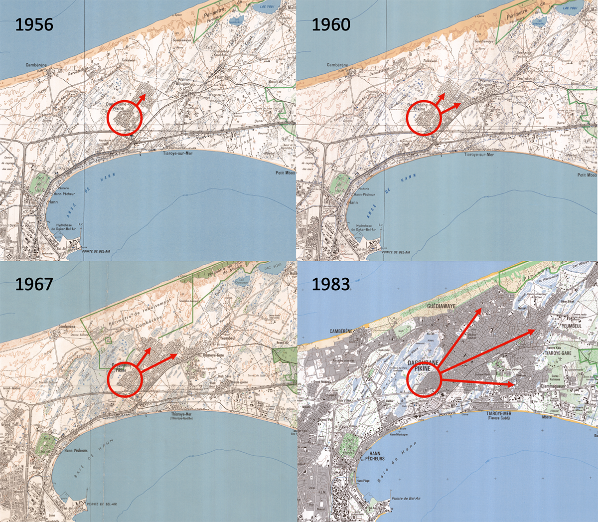 Source: 1:50,000 maps of Dakar – AOF Geographic Service, 1956, 1960; Dakar Geographic Service, 1967; IGN France and Senegal, 1983.