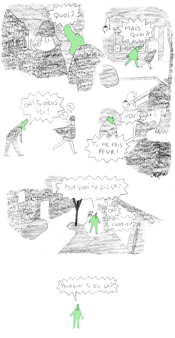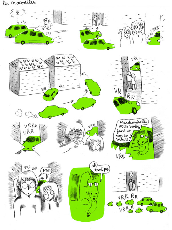 Dessinés par Thomas Mathieu, ces témoignages d’usagères de l’espace public tombent à pic au moment où les acteurs patentés de la politique urbaine souhaitent prendre en compte les usages. D’une part, ils offrent un type d’expression des usagères et usagers qu’il serait bon d’intégrer dans les démarches participatives, afin d’identifier les sujets qui les préoccupent et dont elles et ils pourraient débattre avec technicien·ne·s et élu·e·s. D’autre part, ils rappellent qu’il ne suffit pas de prendre en compte les usages, mais qu’il faut aussi les réguler de telle sorte que ne s’impose pas parmi eux la loi du plus fort. Ces dernières décennies, l’urbanisme fonctionnaliste a conçu l’espace public comme une voirie destinée à favoriser avant tout la circulation motorisée et les réseaux techniques : au règne de la voiture dans la rue correspondait l’hégémonie de la technocratie dans la politique urbaine. Aujourd’hui, si l’on souhaite encourager une appropriation conviviale des rues par la plus grande variété d’usagers et d’usagères, la politique urbaine doit alors basculer du côté du droit des plus vulnérables à emprunter et occuper tranquillement l’espace public. Ce n’est pas gagné d’avance ; un projet comme Les Crocodiles illustre bien la lenteur du nécessaire processus de changement des mentalités.