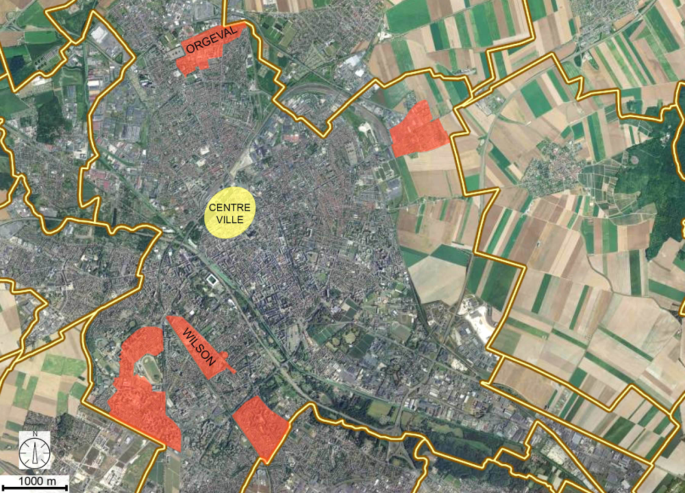 En rouge : quartiers concernés par le Programme national de rénovation urbaine (PNRU).