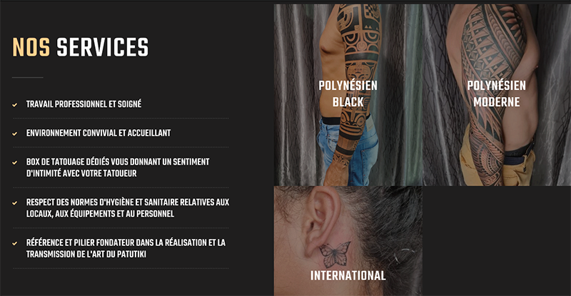 Le patutiki s’inscrit dans un ensemble d’arts graphiques plus vaste, le matatiki, qui implique divers supports : la peau mais aussi le bois, la pierre, le tapa (étoffe d’écorce battue), etc. Dans les shops de Tahiti, les motifs du matatiki sont souvent considérés comme les plus traditionnels, qualifiés de « polynésien black », par opposition à la catégorie de « polynésien moderne » (figure 1).