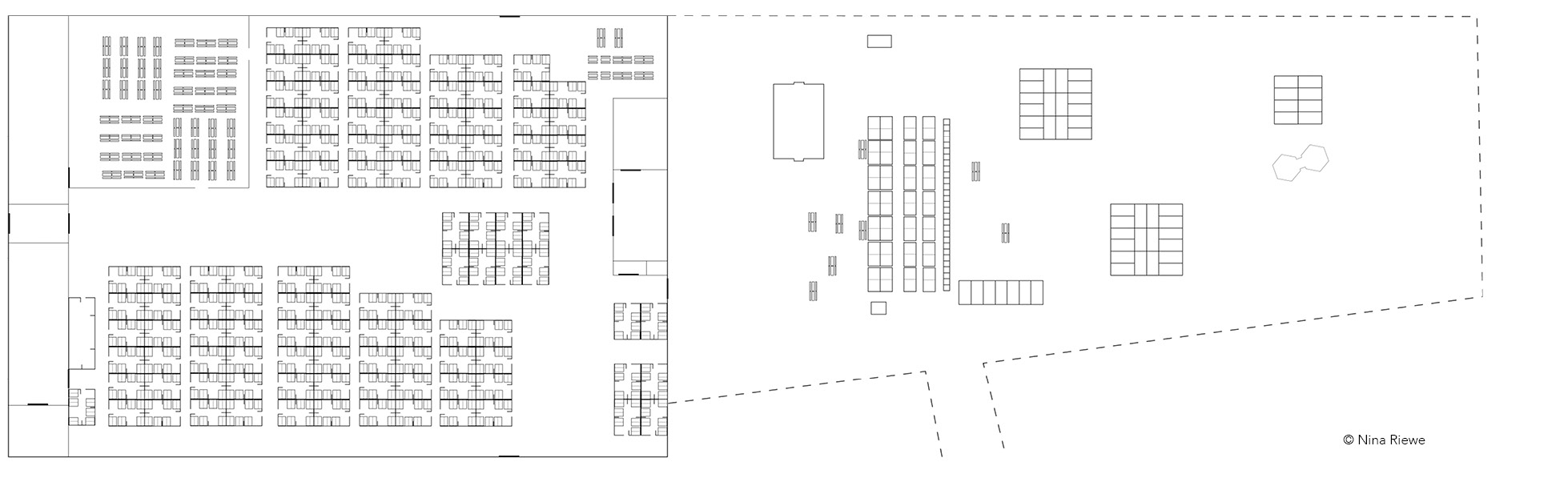 During a period of one year in 2015/2016, my colleagues and I conducted a case study1 of an initial reception camp located in a vacant industrial building—a former meat-processing facility—in the south of Hamburg. Through the close observation of this camp and its various stages of transformation, we explored questions of living, dwelling, appropriation and control over space.