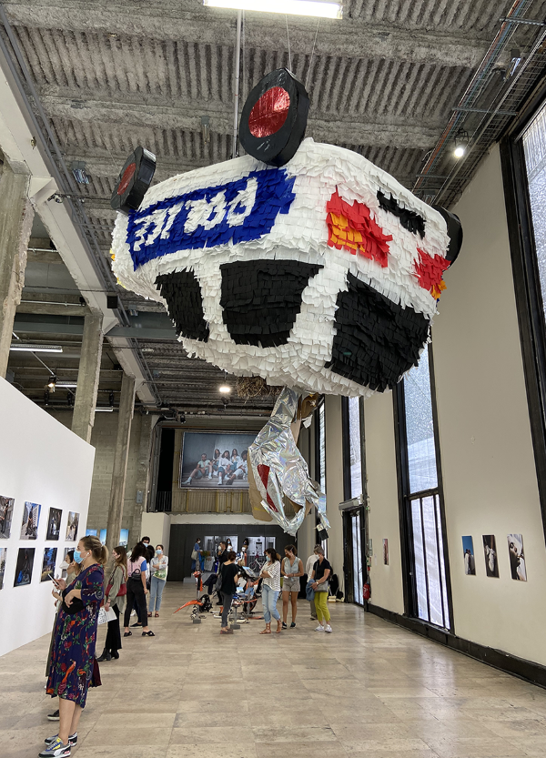 Vingt-cinq ans après la sortie de La Haine, une trentaine d’élèves de l’école Kourtrajmé [1] ont été invités à proposer un ensemble d’œuvres inspirées du film de Mathieu Kassovitz. L’exposition, qui s’est tenue du 29 août au 11 septembre 2020 au Palais de Tokyo, à Paris, donne vie à une vingtaine d’œuvres qui témoignent d’une grande richesse créative : courts-métrages, peintures, dessins, photographies, sculptures, installations performées, fresques, documents audio… Les thématiques convoquées traitent des regards politiques et médiatiques sur les quartiers populaires de banlieue, mais aussi de la vie sociale de ces quartiers, de la présence féminine dans les espaces publics, des révoltes urbaines de 2005, du racisme, de la « culture de rue » et surtout du rapport entretenu par les habitants de ces quartiers avec la police.