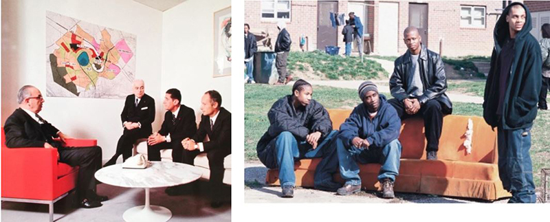 La série The Wire (Sur écoute en France), créée par David Simon et Ed Burns et diffusée sur la chaîne HBO de 2002 à 2008, illustre la correspondance entre une ambition de projet extrêmement forte et la souplesse autorisée par la structure sérielle. Superposant au sein d’une même saison les unités de temps, de lieu et d’action, The Wire s’attaque à la complexité urbaine et sociologique de la grande ville américaine, en livrant des regards focalisés et circonscrits à des thématiques déterminées. Par le changement de milieu à chaque saison, le remplacement de certains des personnages, acteurs, décors et scénaristes permet à la production une forme d’indépendance vis-à-vis de certains aléas (audience, casting, financements, actualités, etc.) et produit un système en mesure de perdurer. Autour de la figure du showrunner, le scénariste en chef garant de la continuité et de l’unité de la narration, un pool de scénaristes se renouvelle constamment, faisant intervenir des sociologues et des spécialistes des univers abordés par l’intrigue. Le fonctionnement scénaristique devient un système inclusif et ouvert, permettant une écriture à plusieurs mains et l’intervention temporaire de personnalités extérieures.