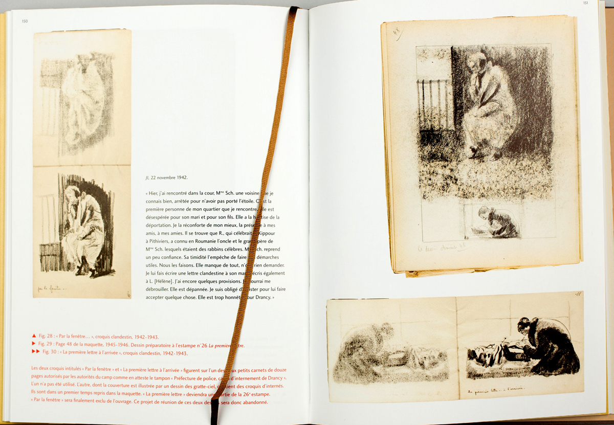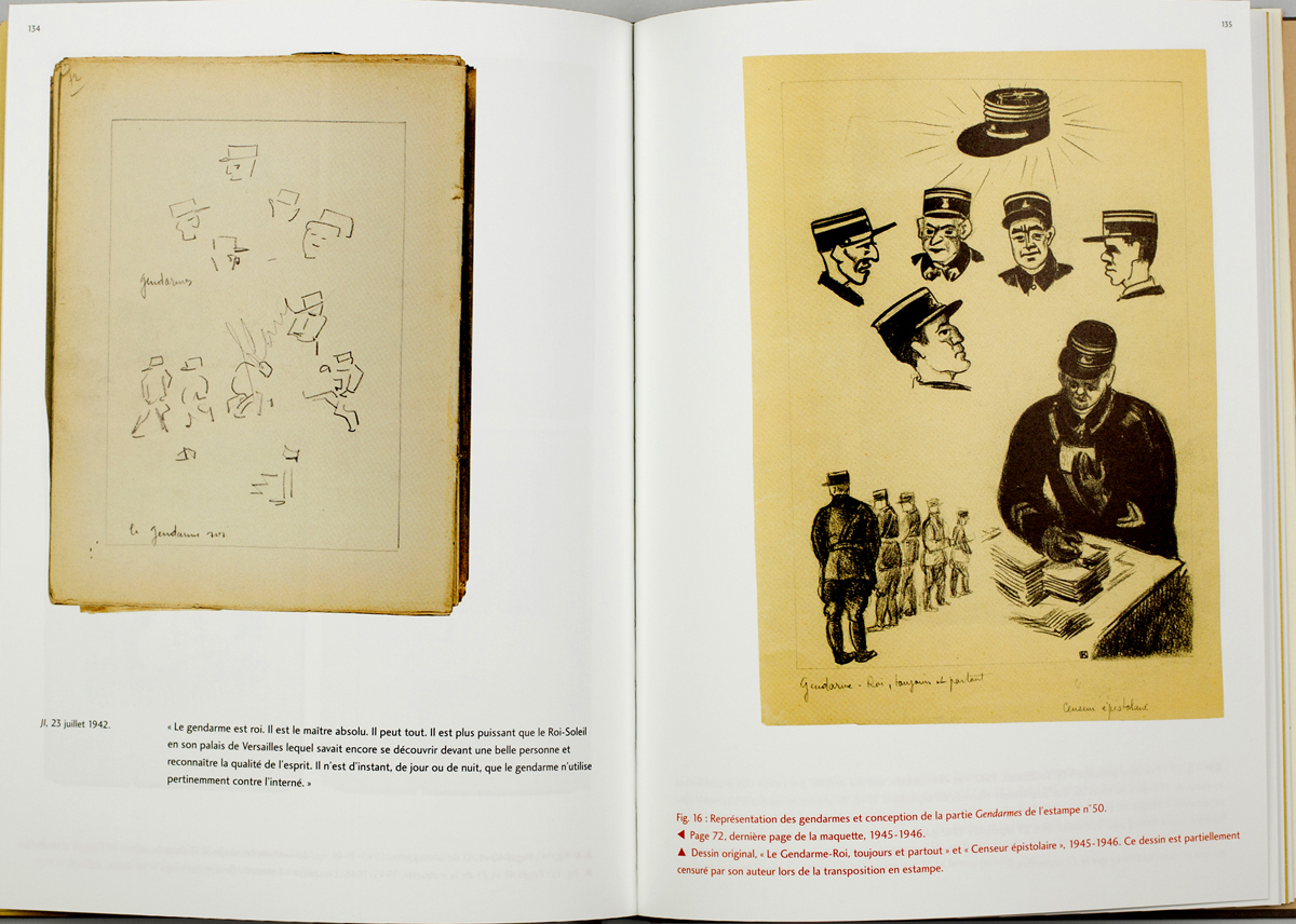 Son épouse, tout en réussissant malgré les difficultés à lui faire parvenir le papier, les crayons et l’encre nécessaires à ses dessins, finit par obtenir pour lui un certificat de « non-appartenance à la race juive ». Déclaré non-juif en janvier 1943, libéré du camp en mars, il commença aussitôt à mettre en forme les notes qu’il avait prises au jour le jour pendant son incarcération, tout en soulignant dès la première phrase : « j’écris ceci pour moi. Pour me libérer d’une obsession » ‒ celle des souffrances endurées, celle du rescapé ? Parallèlement à cette écriture cathartique, il se mit à ordonner ses dessins, « créés sur le vif, mais recomposés et assemblés a posteriori pour former un récit » en vue de les publier, comme témoignage du seuil de l’enfer juif. Revendiquant l’héritage de Jacques Callot, Goya et Picasso, pratiquant comme eux la technique de l’eau-forte pour dénoncer les horreurs de la guerre, il y ajoute la compassion et l’incompréhension pour le sort réservé aux Juifs arrêtés. Il ne devient plus, dit-il, « qu’un observateur, un œil enregistreur. Je transcrirai tout ce que je verrai. Nous dresserons le réquisitoire de cette inhumanité monstrueuse, de cette honte ineffaçable ».
