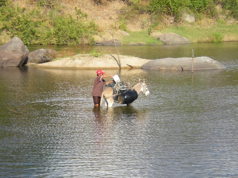 Le foyer de cette femme n’est pas raccordé au système d’alimentation en eau de la communauté rurale du Quinim. Elle continue de puiser l’eau dans la rivière et de la transporter à dos d’âne. Quelques foyers comme le sien sont exclus du nouvel espace maillé par le réseau de canalisations. Trop précaires, l’État annonce qu’ils seront détruits sous peu. En raison de leur éloignement du château d’eau, le débit délivré ne sera pas suffisant. Les branchements illégaux n’existent pas. Les habitants marginalisés par le projet ne possèdent pas les ressources nécessaires pour infléchir le tracé des canalisations. L’inscription matérielle du système d’eau reflète donc l’hétérogénéité des communautés rurales. Elle traduit également l’action de ses usagers sur l’objet technique.