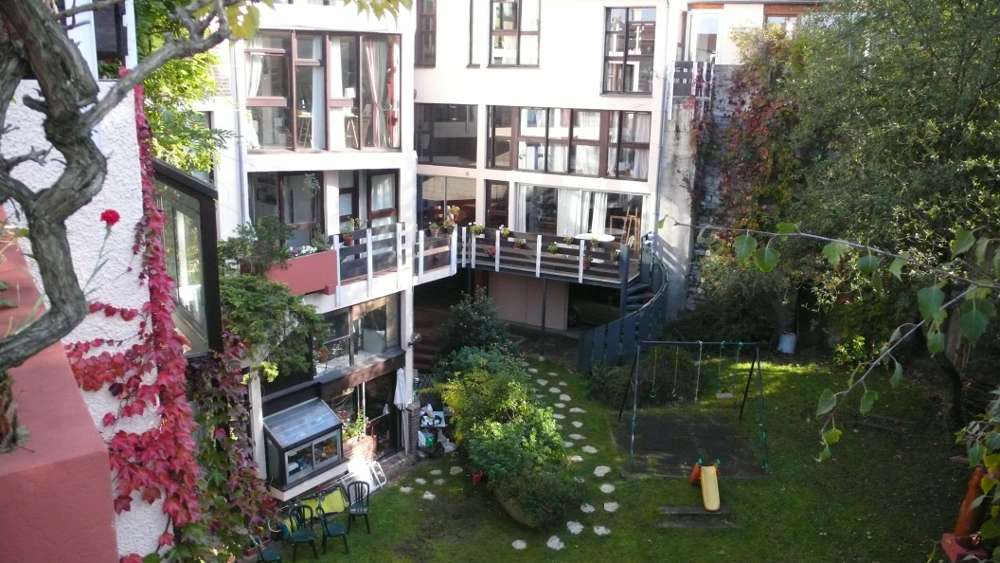 La Maison du Val a ouvert à Meudon en 1980, portée par les principes de l’habitat autogéré. Dix familles se sont rassemblées ici, représentant au départ 18 adultes et 27 enfants. L’espace conçu prend la forme d’un immeuble en U faisant de trois à six étages. À côté des logements de chacun, en partie communicants et tous différents, et d’un jardin intérieur à ce petit îlot, le groupe retient l’idée de donner une place essentielle aux espaces communs, lesquels forment un ensemble de plus de 250 m². Ce faisant, ils donnent consistance à ce qui constitue le cœur du projet : l’envie de partager. Au cours des années, les salles accueillent différentes fonctions : crèche parentale et répétition chorale, rassemblement de la petite communauté autour d’un dîner mensuel, atelier de peinture et de poterie, ou encore deux studios d’accueil destinés à des membres de passage d’une famille ou à l’hébergement d’aide à des mal-logés.