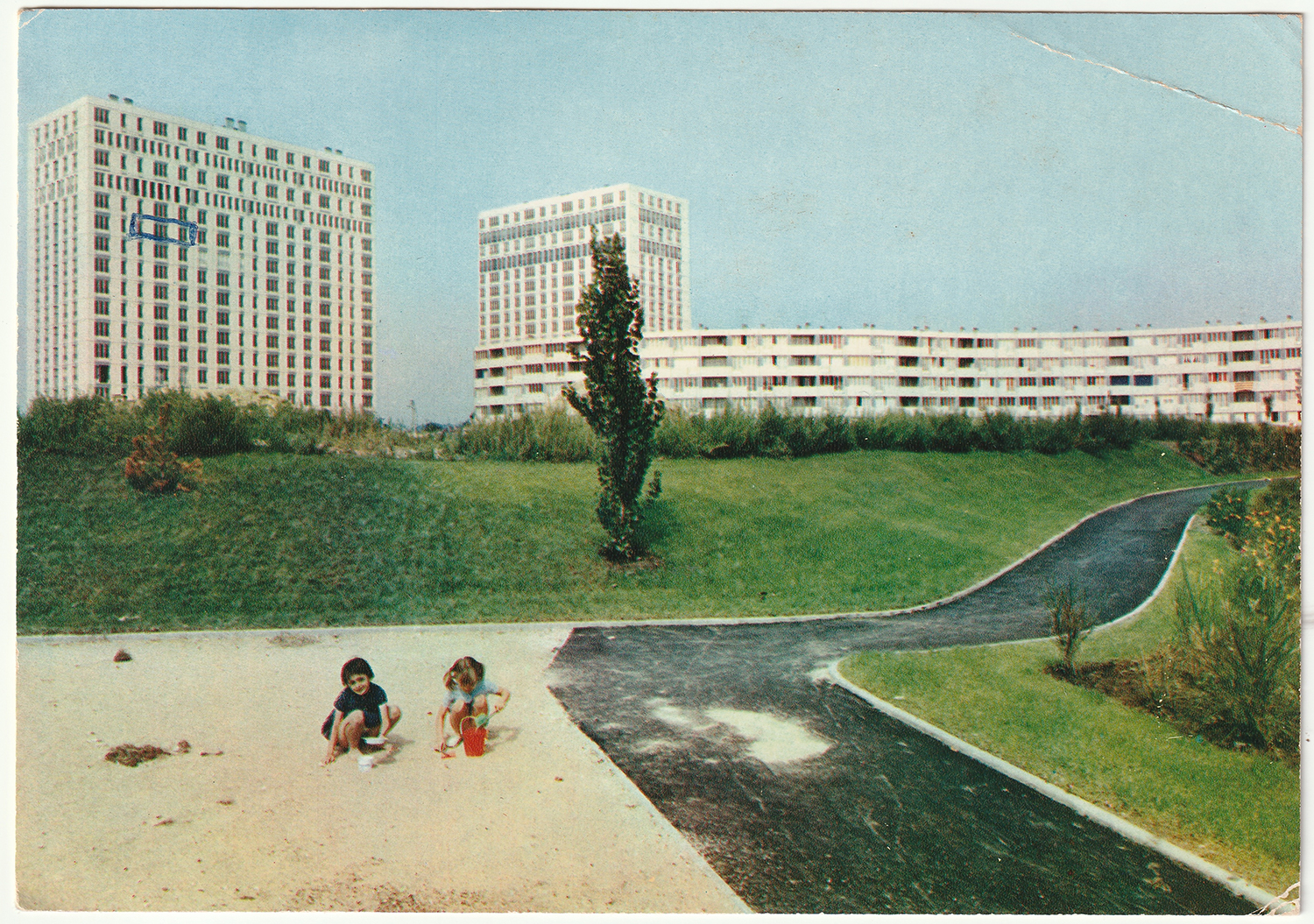 On est bien arrivés convoque aussi les souvenirs de la cité et rend hommage à leurs habitants. Les cartes postales publiées deviennent des témoins de la beauté passée de ces immeubles et de la vie sociale qui peut continuer de s’y déployer. Il s’en dégage une certaine nostalgie (surtout à la lecture de la postface de Xavier Capodano [6]), à l’égard de lieux emblématiques dont certains ont été démolis, et peut-être d’un âge d’or rêvé du grand ensemble, comme l’espace d’une promesse d’ascension sociale qui semble aujourd’hui révolue.