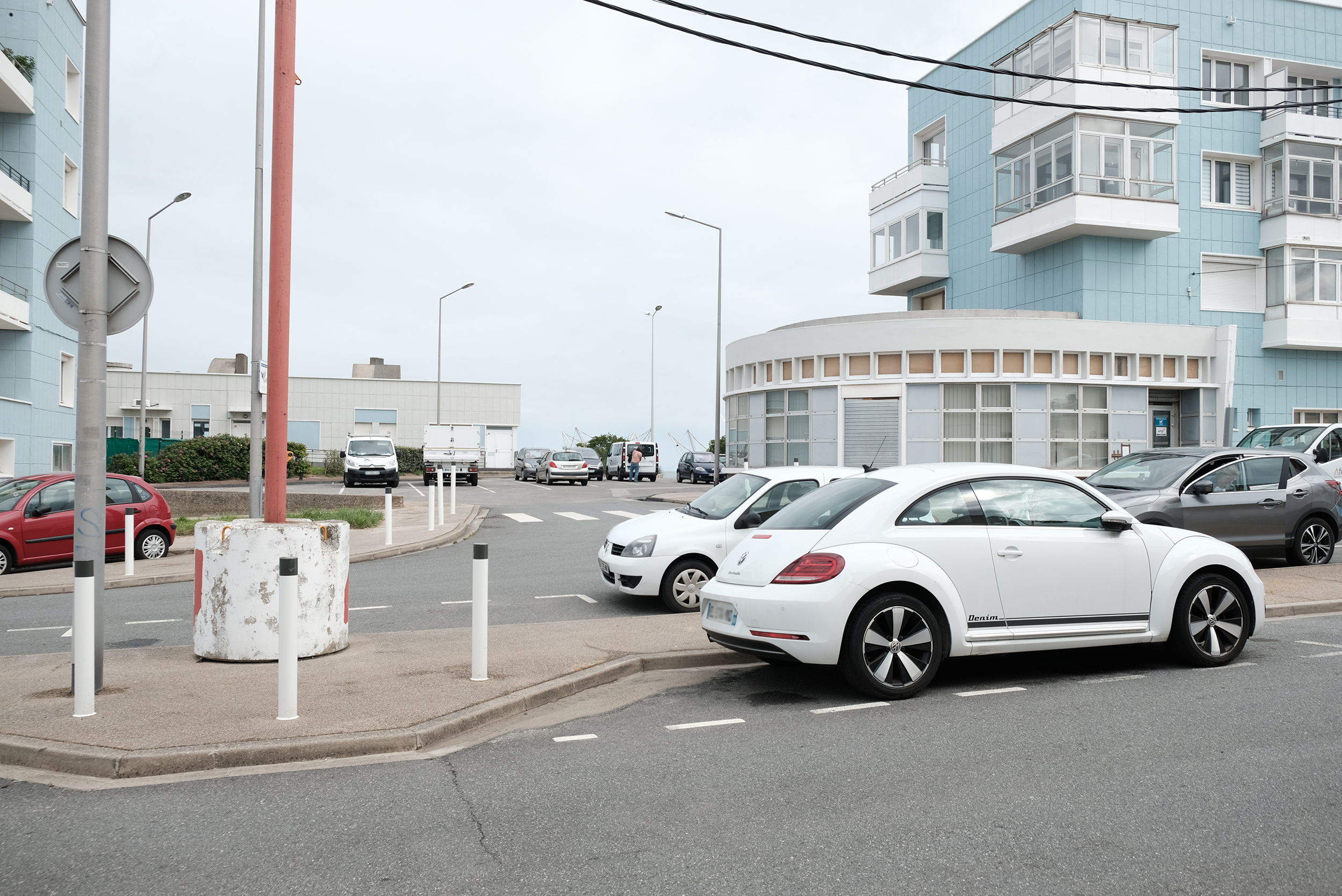 Photo 3. L’accès à la promenade littorale de Malo-les-Bains (Dunkerque) traverse les voitures, potelets, bordures, barrières, pontons, bacs à fleurs, escalier abîmé, etc. L’espace public est, ici, le résultat fortuit de différentes opérations successives qui ont laissé une place prédominante à la voiture et aux normes qu’elle impose. Paroles recueillies pendant la causerie : « Il faut désencombrer l’espace public et se débarrasser du superflu ».