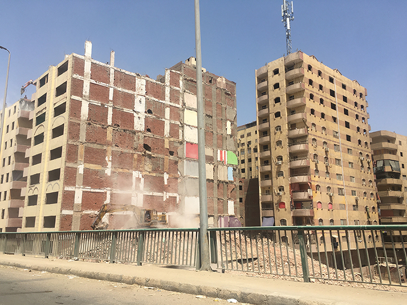 Les discours stigmatisant les façades en briques rouges des immeubles informels, les décrivant comme « non civilisées » (غير حضاري) ou opposées à la modernité urbaine, se matérialisent donc de diverses manières dans les espaces urbains égyptiens : des campagnes massives de destruction (figure 10), un cadre législatif qui renforce l’interdiction des constructions informelles, mais aussi la fermeture de centaines de briqueteries à travers le pays. C’est tout un système constructif, social et économique qui est ciblé par le gouvernement égyptien, de l’usine au chantier. L’enjeu n’est pas ici de remettre en cause le bienfait ou non de ces politiques visant à réguler et standardiser la construction dans le pays, mais bien de montrer qu’elles reposent sur un processus d’accaparement d’un droit à construire la ville.