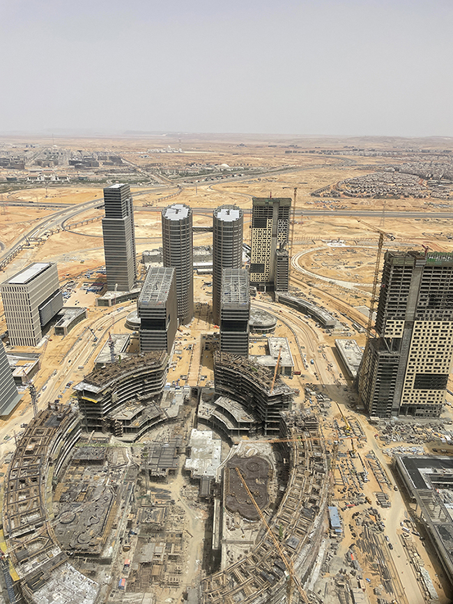 Officiellement, ces mesures sont temporaires et doivent permettre la mise en œuvre de nouvelles normes de construction et règles de planification. Elles ciblent toutefois explicitement et de manière durable le secteur informel privé, car les chantiers non résidentiels, gouvernementaux et toutes les constructions situées dans les villes nouvelles sont exempts de ce nouveau cadre législatif. L’interdiction pour les particulier·ères a, elle, été renouvelée en janvier 2022 pour une période de dix ans [8]. Les seuls projets autorisés sont ceux qui sont supervisés, plus ou moins directement, par les acteurs publics, à l’instar du mégaprojet de la Nouvelle capitale administrative (figure 9) et de toutes les villes nouvelles construites dans les périphéries désertiques du Grand Caire.