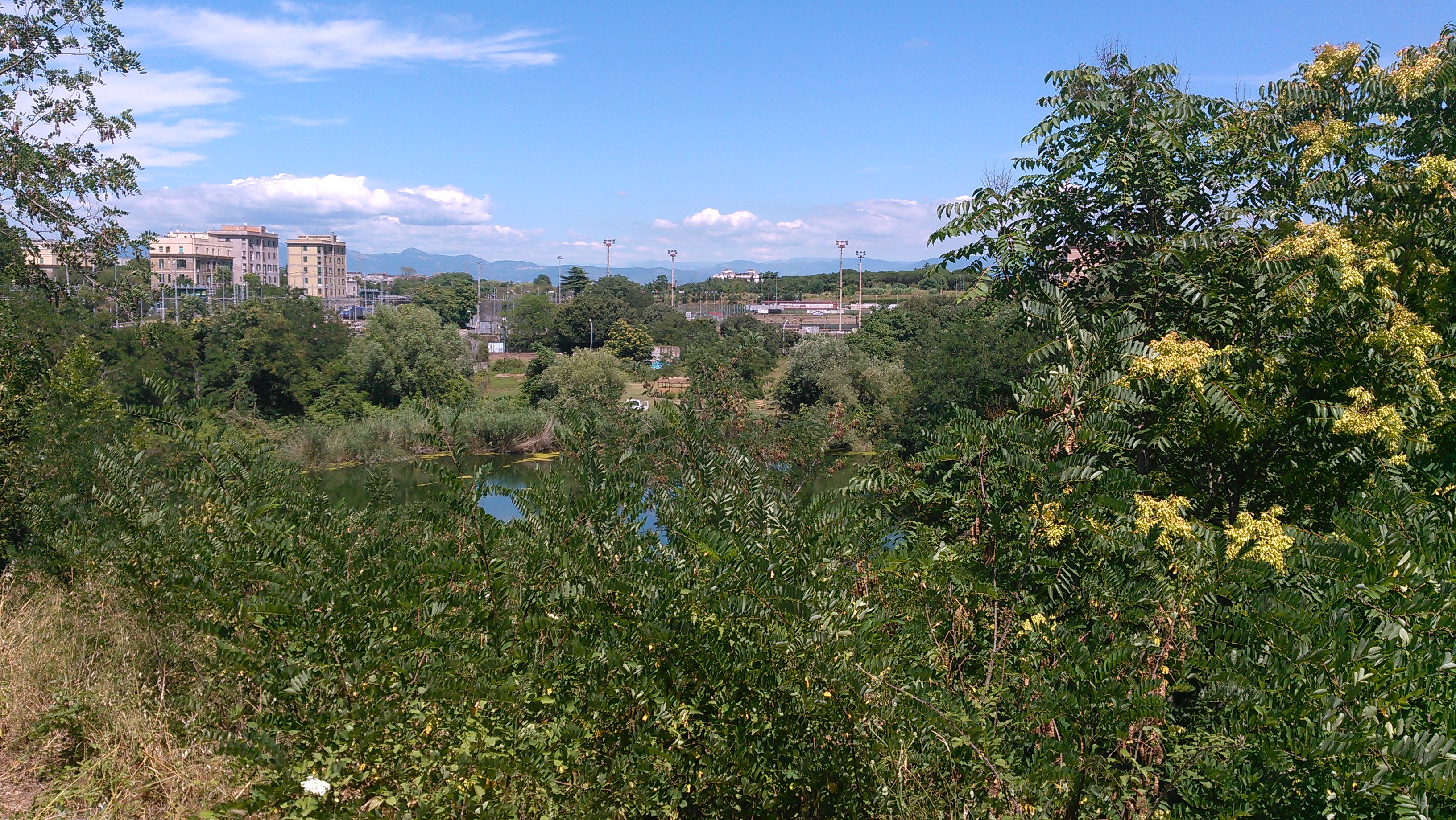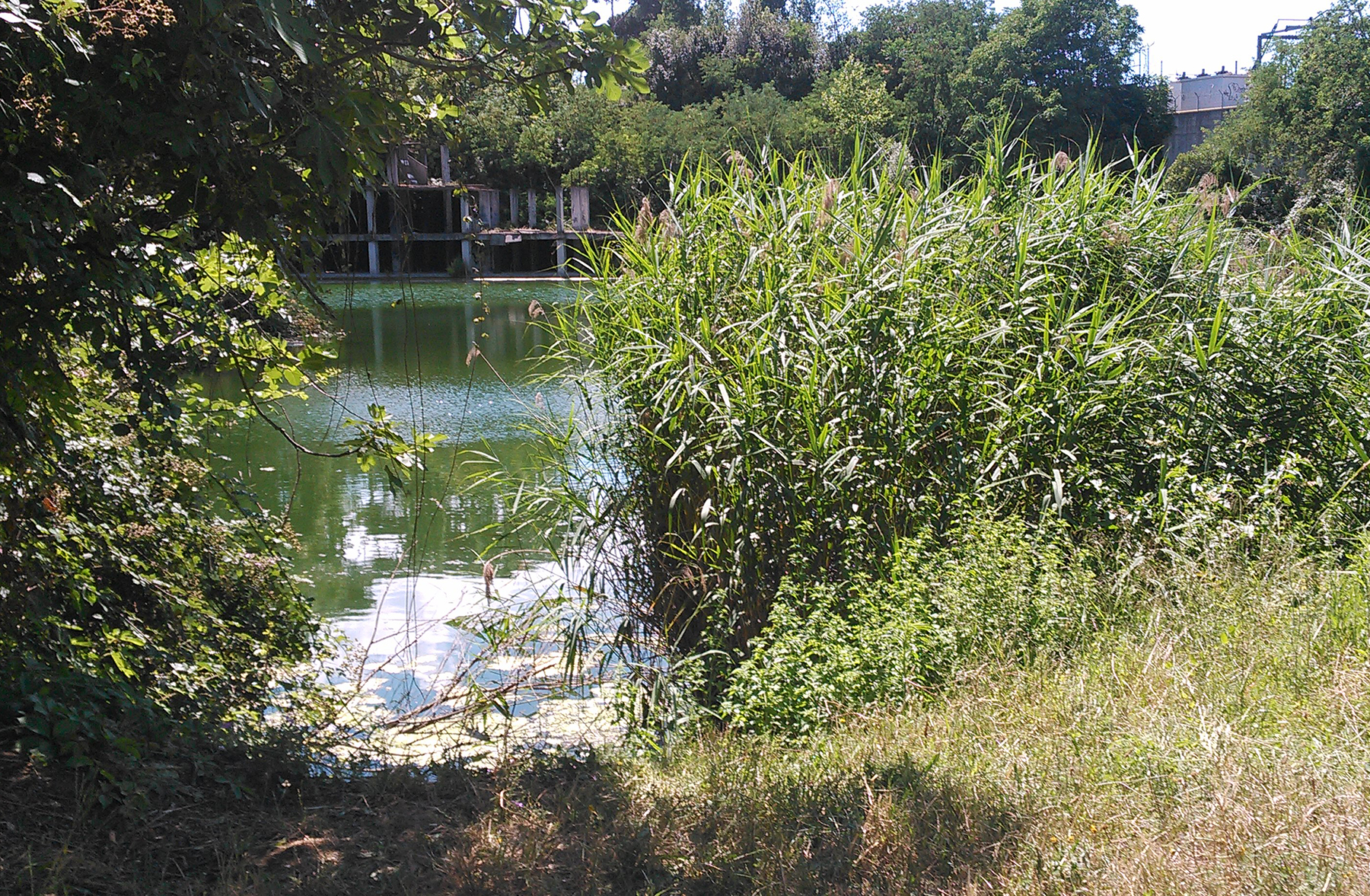 La SNIA Viscosa, une des usines les plus grandes de Rome, naît en 1924. Fermée après la guerre, la zone reste abandonnée. Dans les années 1990, un constructeur achète le terrain pour y créer un centre commercial. Alors qu’il commence à creuser, de l’eau surgit et on découvre qu’il n’avait pas de permis de construire, que le projet était donc illégal. Le chantier ferme, mais l’eau continue de jaillir et se forme un lac pérenne (figure 1). Le fait que la zone ait été délaissée pendant des décennies rend la « renaturation » du site très rapide. Les habitants du quartier se mobilisent dès 1992 pour que cette zone soit reconnue comme un espace vert urbain. La municipalité de Rome exproprie d’abord une partie du secteur et, en 2020, nous obtenons, après d’autres tentatives de spéculation, que la zone du lac soit considérée comme « Monument naturel ». Il s’agit d’un instrument dont dispose la région Latium pour établir des petites zones protégées. Il reste que toute la zone ne l’est pas encore, la lutte continue, donc. En effet, pour nous, le lac et l’usine forment un ensemble. Dernièrement, en apprenant que la municipalité a cédé un permis à l’ancien propriétaire afin qu’il puisse récupérer tous les bâtiments (ceux en bon état mais aussi ceux qui s’étaient effondrés), nous nous sommes mobilisés à nouveau. Aujourd’hui, il semblerait que la municipalité soit d’accord pour étendre le parc sur les terrains des bâtiments en ruine et installer des services au sein des bâtiments qui tiennent encore debout.