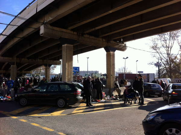 « Le marché aux puces gagne chaque dimanche du terrain. Il déborde et déborde encore…, spécialement sous la passerelle du boulevard du Capitaine Gèze (15e). C’est là que le marché aux puces donne la pleine mesure de ses boursouflures. 40 000 à 50 000 personnes s’y pressent chaque dimanche. Créant ainsi des embouteillages insupportables… Marseille dessine une zone de non-droit qui s’étire jusqu’au boulevard de la Maison Blanche, au Canet. Sur le pavé, Roms et Maghrébins pour l’essentiel se disputent le marché de la misère. Quatre euros le paquet de Marlboro, 1 euro le sac d’épices, 7 euros le jean pour enfant au lieu de 25. Cinq euros la housse de portable, 2 euros encore la toile cirée, 4 euros la paire de bottes pour femmes… »