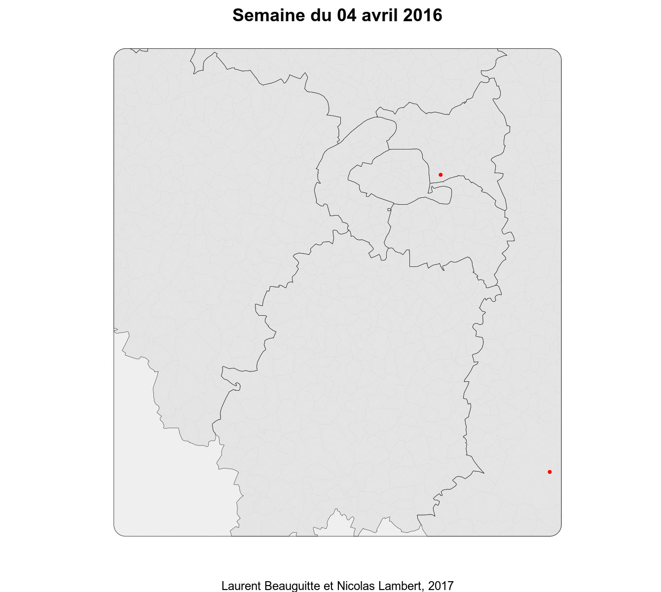 Nous avons analysé trois supports principaux pour savoir où et quand des assemblées Nuits debout ont eu lieu : le wiki mis en place pour le mouvement (https://wiki.nuitdebout.fr), les comptes Facebook et Twitter des différentes ND, et les blogs créés par certaines ND (à Saint-Ouen, par exemple). Les informations sont plus ou moins fiables et/ou complètes selon les lieux : certaines assemblées annoncées ont été annulées, faute de participant·e·s (Enghien-les-Bains), d’autres ont été annoncées uniquement par voie d’affichage ou via des listes de diffusion internes (Paris 13e). Ce caractère lacunaire des sources nous a poussés à limiter notre étude à l’Île-de-France [2], où nous pouvions compléter les données (Lambert 2016) par une démarche d’observation participante de plusieurs assemblées de quartier et de banlieue entre avril et juillet 2016 [3].