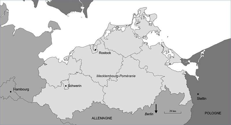 Notre étude [4] porte plus particulièrement sur le Land de Mecklembourg-Poméranie, un territoire globalement rural dont cet article analyse les dynamiques de développement. Quelles formes y prend la périphérisation ? Quels sont les stratégies et les outils mobilisés par les acteurs locaux pour le développement de leur territoire ?