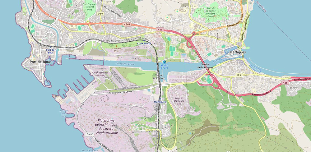 Ces trois livres ont en commun un lieu spécifique de Martigues : le chenal de Caronte et les zones industrielles et portuaires qui le bordent, de Martigues à Port-de-Bouc et à Lavéra. Cet espace, emblème de l’artificialisation de nos sociétés, a fait l’objet d’aménagements qui ont totalement modifié les limites entre la terre et l’eau depuis plus d’un siècle. Dès 1908, un chenal est creusé et plusieurs fois approfondi afin de permettre le passage des barges puis des pétroliers vers l’étang de Berre. Les anciennes bordigues, dispositifs de capture des poissons, sont éliminées, ainsi que les salines qui occupaient le sud de l’étang de Caronte. À partir des années 1960-1970, les berges du canal sont remblayées, en utilisant en particulier les déblais des zones industrielles creusées dans les roches calcaires des collines voisines. Bref, l’alliance de la Chambre de commerce et d’industrie de Marseille, porteuse des intérêts de la bourgeoisie marseillaise, et de l’État, a imposé une nouvelle géographie. En parallèle, depuis le XIXe siècle, diverses usines sont construites sur ses rives : usines de soude, d’oléagineux, puis liées à la pétrochimie. Les pollutions de l’air, des sols et de l’eau (déballastage des pétroliers) souillent le milieu. C’est cet espace aménagé pour et pollué par l’industrie qui est mis en scène dans ces trois ouvrages.