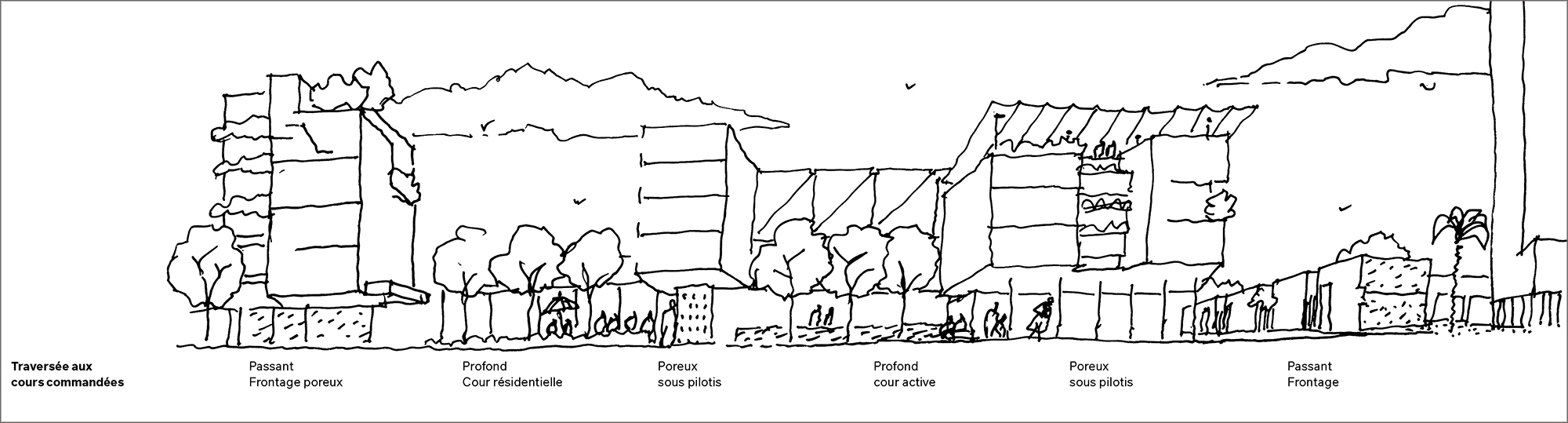 Ainsi, « le rez-de-ville est passant quand il prend en compte les itinéraires et propose une hiérarchie viaire compatible avec l’habitabilité des rez-de-chaussée. Le rez-de-ville est poreux lorsqu’il ajuste l’accessibilité et la transparence des parcelles et des bâtiments. Enfin, le rez-de-ville est profond s’il projette des lieux moins visibles, moins accessibles à première vue, au cœur des îlots » (p. 369).
