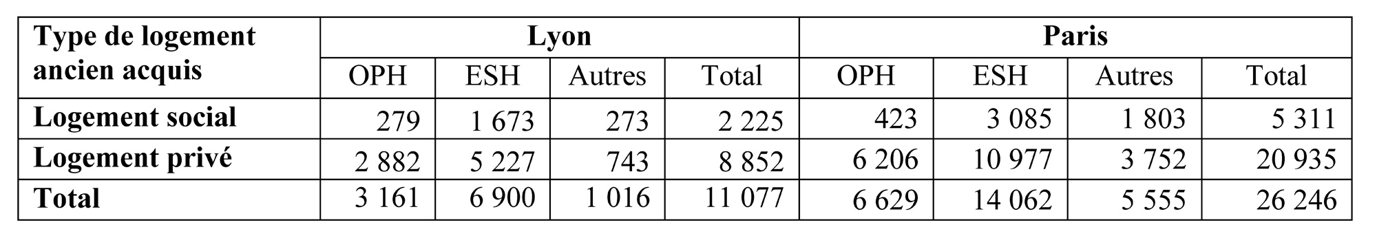 Au sein de ces acquisitions dans l’ancien, il y a lieu de distinguer entre celles provenant d’un transfert entre bailleurs (20 % des acquisitions à Lyon et Paris) et celles acquises du parc privé.