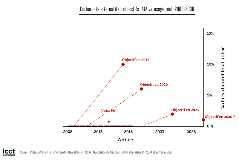 Source : Dan Ruthford, The International Council on Clean Transportation. Pour plus d’informations, voir le rapport de We Are Possible : « Missed Target: A Brief History of Aviation Climate Targets », mai 2022, disponible sur : https://www.wearepossible.org/our-reports-1/missed-target-a-brief-history-of-aviation-climate-targets.