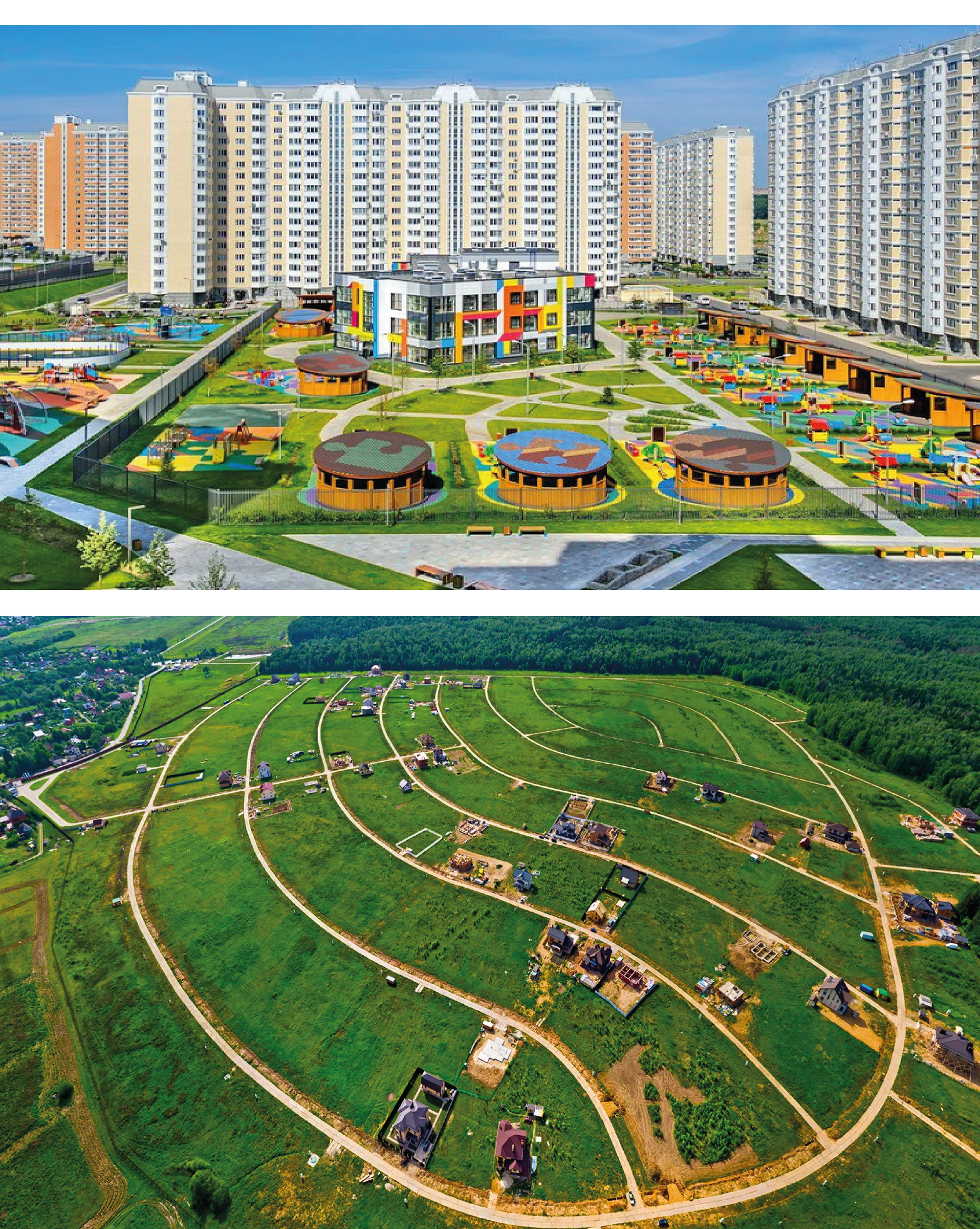 The organization of multi-family housing districts follows a structure that directs residents’ lives towards a central courtyard, parking lot, play area, pond or school (Figure 4). The mayor’s office favors traditional public facilities at the foot of the building: parking lots, schools, kindergartens, polyclinics and shopping areas. In the best of cases, the new metro stations are within a twenty-minute walk, but more often than not require the use of a bus or car. More rarely, developers have built suburban blocks where public transport is virtually non-existent. In the area furthest from the MKAD, New Moscow remains dominated by rurality: scattered villages, low-productivity agriculture and dacha cooperatives.