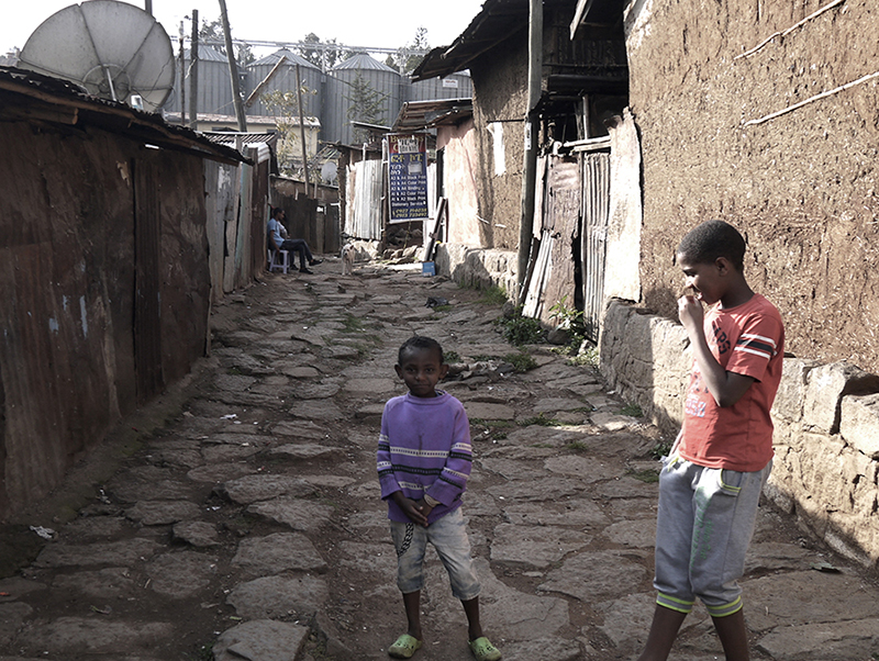 UN-Habitat (2017) estime qu’environ 30 % d’Addis Abeba est composée de slums, zones urbaines d’habitations basses à haute densité de population, regroupant quelques habitats informels et une majorité de kebele houses, qui sont des propriétés de l’État louées à bas prix. La plupart des slums présentent des problèmes liés à un développement urbain rapide et dense : dispersement des points d’eau et d’assainissement, pollutions, interruptions dans la fourniture des services de base qui vont de quelques heures à plusieurs jours (UN-Habitat 2017). L’accès à l’eau dans le slum « Coca-Cola » (figure 3) est assuré par le réseau conventionnel, mais le branchement individuel est souvent très coûteux pour les ménages les plus pauvres. Les canalisations principales, situées sous une route qui longe le slum, dépendent des pouvoirs publics et des plans de développement de l’Addis Ababa Water and Sewage Authority (AAWSA). Les habitants doivent faire une demande de raccordement (individuelle ou collective) aux canalisations principales auprès de l’AAWSA, mais financer eux-mêmes la pose des canalisations secondaires, ainsi que certains dispositifs techniques, comme les robinets ou les fontaines extérieures privées. Face au prix du service, les habitants les plus pauvres de « Coca-Cola » se réunissent et mutualisent leur consommation en utilisant un seul point d’accès à l’eau. Ils s’organisent également pour obtenir le droit d’accéder aux fontaines publiques, généralement situées dans l’espace commun du kebele ou dans l’espace public le plus proche. Pour pallier l’intermittence du service, les habitants ont développé des stratégies alternatives afin de limiter leur consommation et stocker l’eau potable. Certaines familles collectent l’eau de pluie, qui est réutilisée pour se laver et pour les tâches ménagères. Chaque famille possède ses propres systèmes de stockage de l’eau (réservoirs, barils ou bidons). Quand il n’y a pas d’eau pendant plusieurs jours et que les familles ont terminé leurs stocks, elles achètent l’eau potable auprès de revendeurs privés (habitants de la zone ou d’autres quartiers, vendeurs ambulants). Le coût de cette eau est cependant souvent plus élevé que le prix conventionnel.