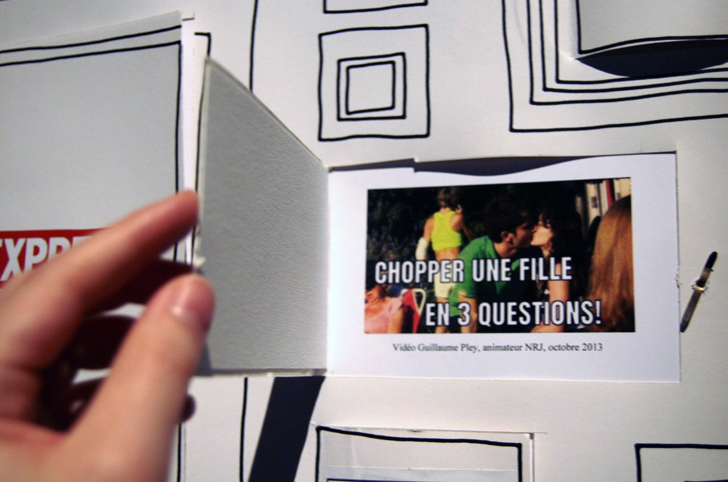 Ainsi, en 2012, un an avant la création de cette exposition, la cinéaste belge Sofie Peeters réalise Femme de la rue, documentaire tourné en caméra cachée dans un quartier de Bruxelles, limitrophe de la commune de Molenbeek, où on peut la suivre et assister à toutes les interpellations et remarques sexistes dont elle fait l’objet. Le film a bénéficié d’un réel engouement médiatique. De nombreux articles et reportages se sont alors emparés de la question du « harcèlement de rue », mais en relayant aussi, bien souvent, des discours qui stigmatisent les quartiers populaires et leurs habitants. Ces discours construisent l’image d’un agresseur stéréotypé selon des préjugés classistes et racistes.