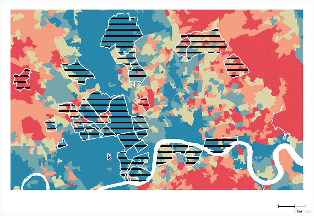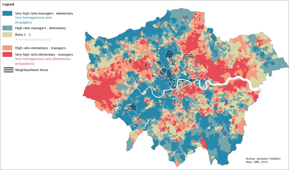 Mapping socio-economic diversity in London shows that distinct homogeneous groups, mostly well-off, can now enact new administrative boundaries around their “neighbourhood”, and gain more control over the planning of their environment. Neighbourhood Areas allow them to shore up their communal identity by demarcating their own territory within the rest of the city. By contrast, in the most socio-economically diverse neighbourhoods, the implementation of the Localism Act creates tensions and often results in failure. This is what happened in North Hackney in 2013, where two “local communities” – one group mainly composed of orthodox Jews and another group of secular middle- and upper-middle-class inhabitants – claimed the same territory as their Neighbourhood Area, eventually resulting in the rejection of both applications by Hackney Council on the grounds that they were “not viable” (see Booth 2013).