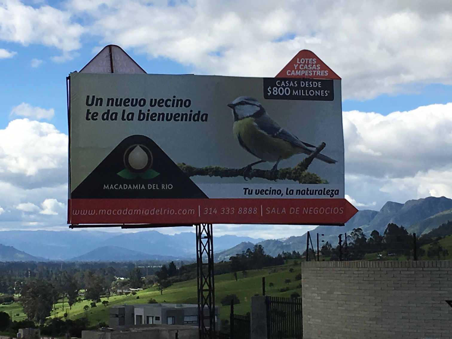 “A new neighbor welcomes you; your neighbor, nature,” claims a billboard on the road between La Calera, a small town, and Bogotá, the Colombian capital. This new ad for a gated community targets upper-middle-class Bogotans and shows a native bird from this rural region (Figure 1). But the billboard ignores that there are old neighbors—peasants and former workers of an old cement factory who still live in La Calera.