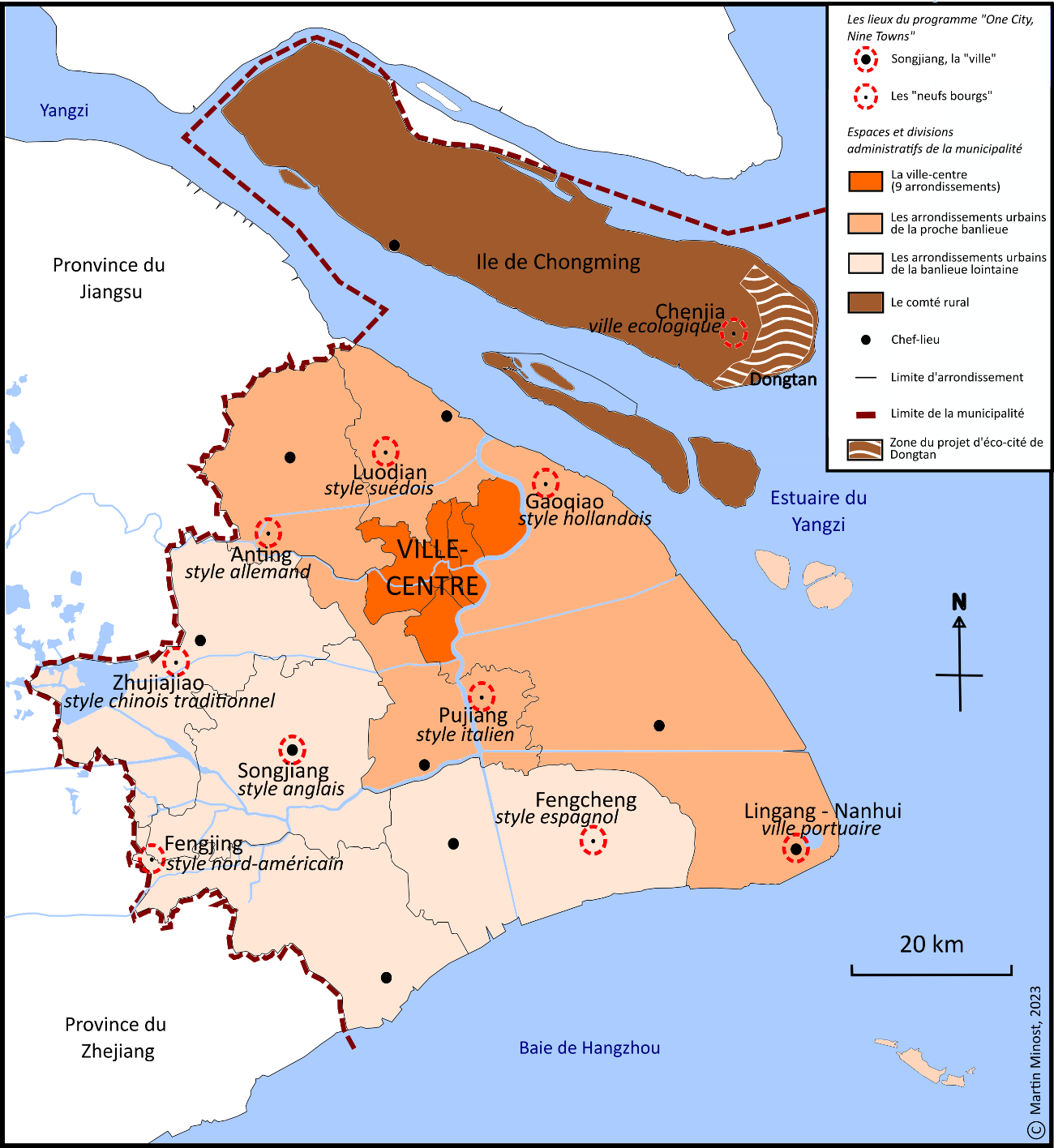 Figure 1. Les villes du programme One City, Nine Towns dans la municipalité de Shanghai