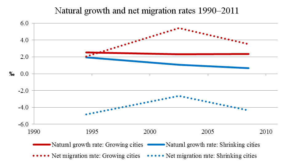 Shrinking cities’ migratory deficits can result from different factors: the mass departure of inhabitants, low numbers of new residents, or a combination of the two.