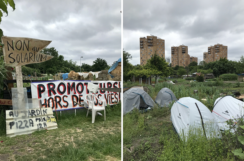 The formation of the Collectif de Défense///Defense Collective can be explained in part by recent changes in the sociology of Vertus gardeners. The arrival of new, younger members, belonging to the educated bangs of the middle classes and politicized on the left, reflects the changing sociological make-up of the commune. The Collectif thus brings together different social categories: more modest and elderly gardeners, as well as middle-class gardeners, newly arrived thanks to the Covid‑19 pandemic. They were soon joined by Aubervilliers residents and environmental activists sympathetic to their cause (Extinction Rebellion, Youth for Climate, Alternatiba, Collectif pour le Triangle de Gonesse).