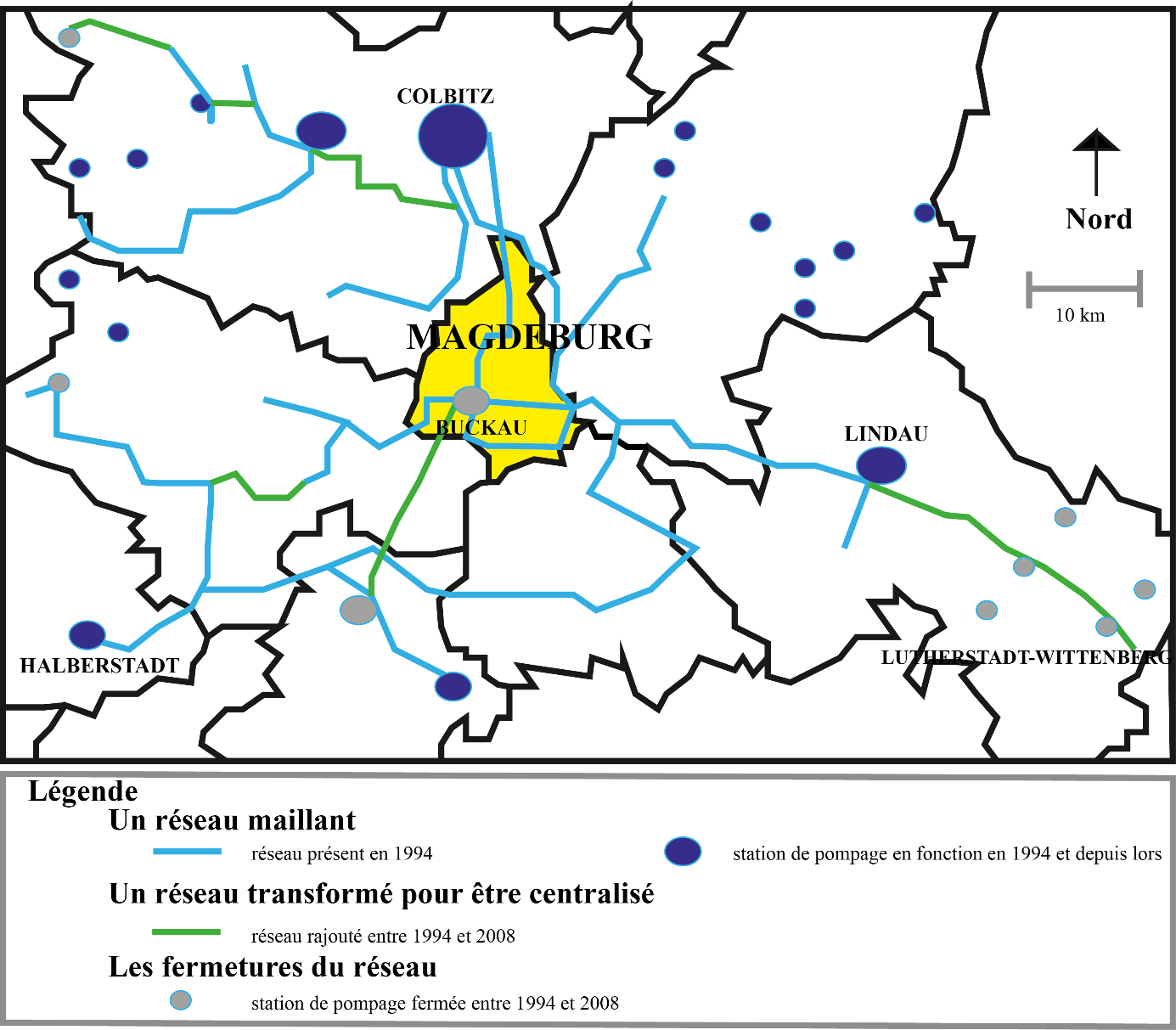 En ayant anticipé les évolutions territoriales et en ayant garanti une égale qualité de service au niveau infrarégional, la TWM a créé une forme de nouveau territoire de l’eau ainsi qu’une solidarité interterritoriale qui s’est maintenue avec le temps et malgré la crise, dans laquelle Magdebourg paie pour la stabilité de la région qui l’entoure, fortement affectée par les différentes crises économiques et sociales des 25 dernières années. Si ce système génère un surcoût important, l’opérateur y trouve également son intérêt, puisque des extensions du réseau vers une autre ville (Wittenberg) ont permis de diminuer les risques de stagnation et de contamination de l’eau sur son territoire, rendant celui-ci moins vulnérable.