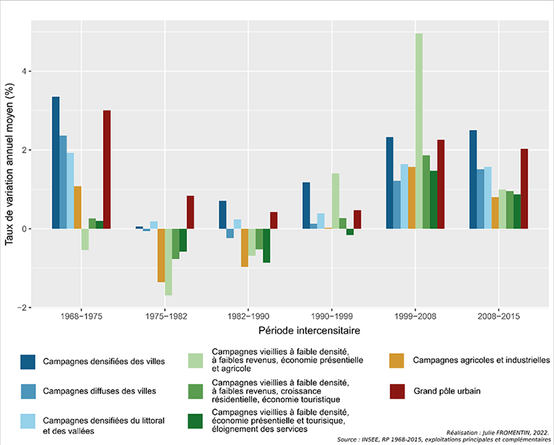 Source : INSEE, RP 1968-2015, exploitations principale et complémentaire. Réalisation : J. Fromentin, 2022.