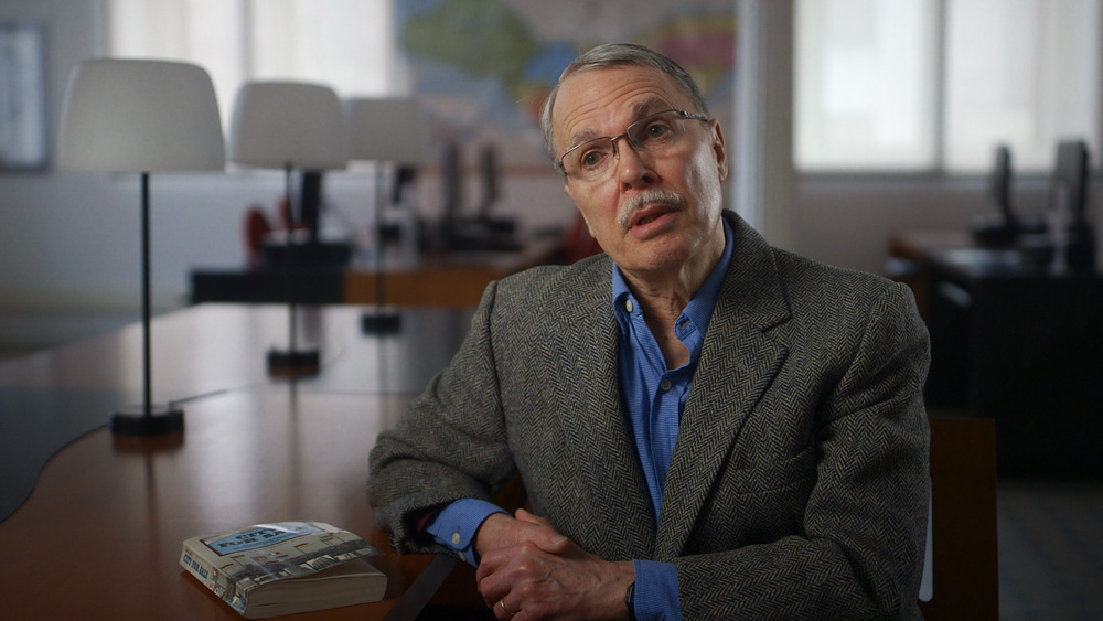 Henry Aubin en entrevue avec le réalisateur aux Archives nationales (Main basse sur la ville © Films de l’Œil).