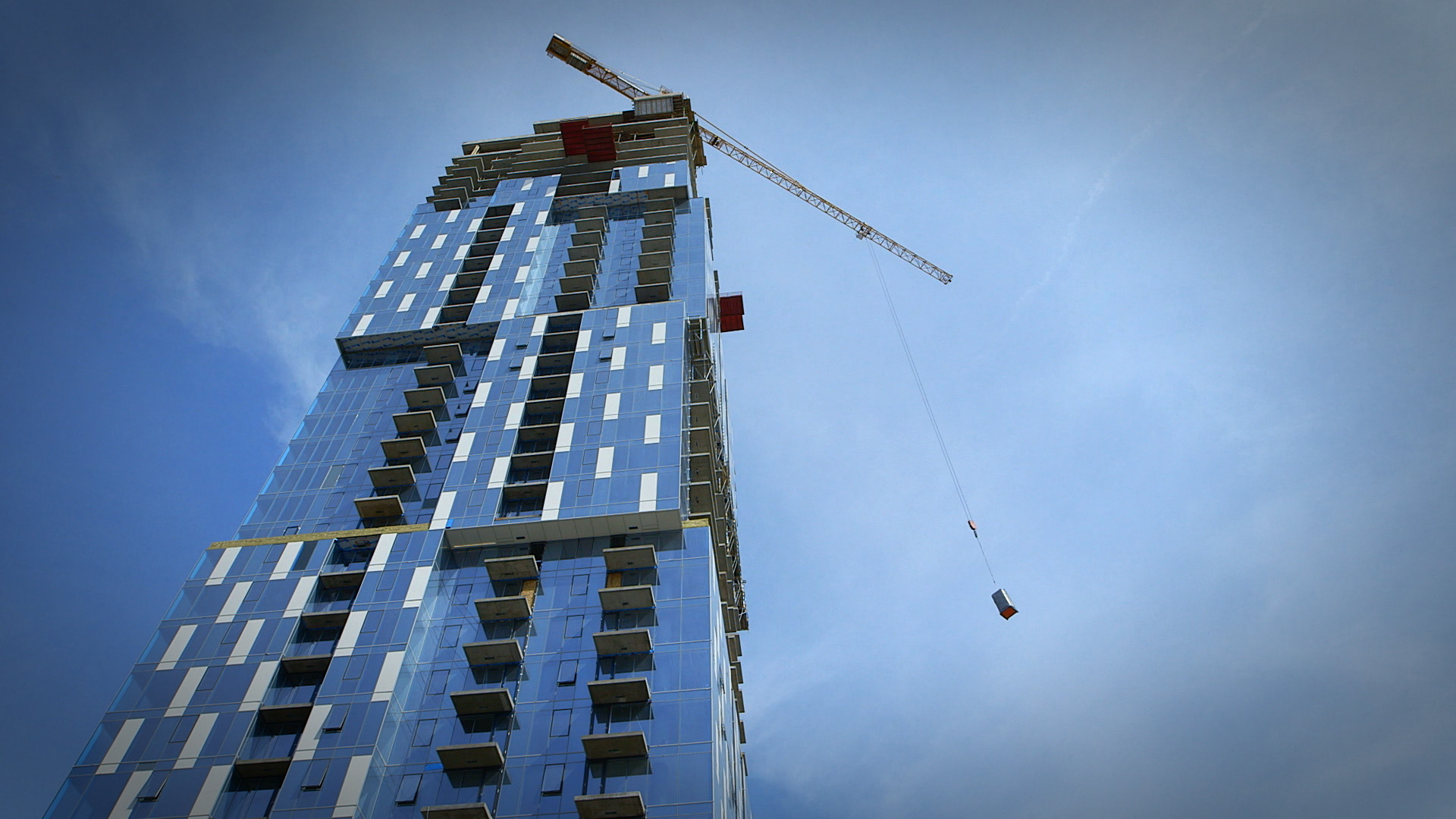 Immeuble quelconque typique du développement actuel à Montréal (Main basse sur la ville © Films de l’Œil).