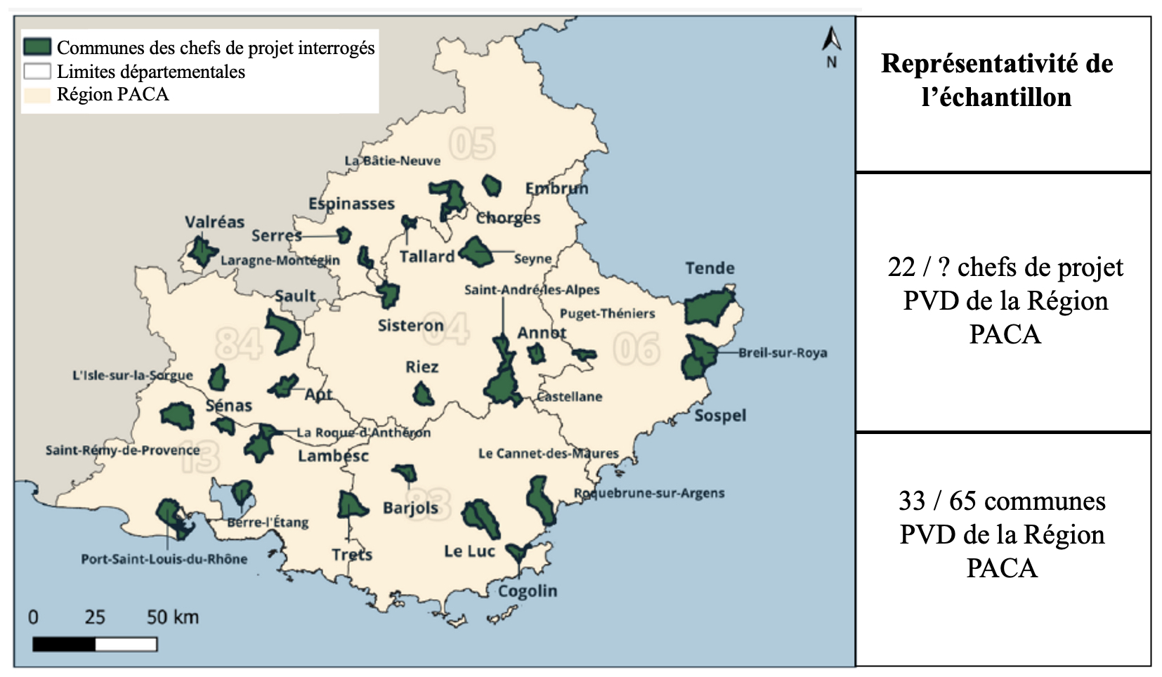 Les chefs de projet sont les pivots du programme d’État PVD, conçu « pour donner aux collectivités les moyens de définir et mettre en œuvre leur projet de territoire, en particulier par le renforcement des équipes [2] ». Ils ont la responsabilité d’assurer le pilotage opérationnel de projets de revitalisation des territoires pour le compte des exécutifs communaux et/ou intercommunaux. L’enquête ici mobilisée, centrée sur ces professionnels, interroge la mise en œuvre du programme national. Appuyée sur un exercice pédagogique de « Pratique de la recherche en urbanisme et aménagement [3] », une vingtaine d’entretiens ont été réalisés au printemps 2023 auprès de chefs de projet en poste dans des petites villes [4] de la Région PACA, de référents départementaux et régionaux et de la responsable nationale du programme.