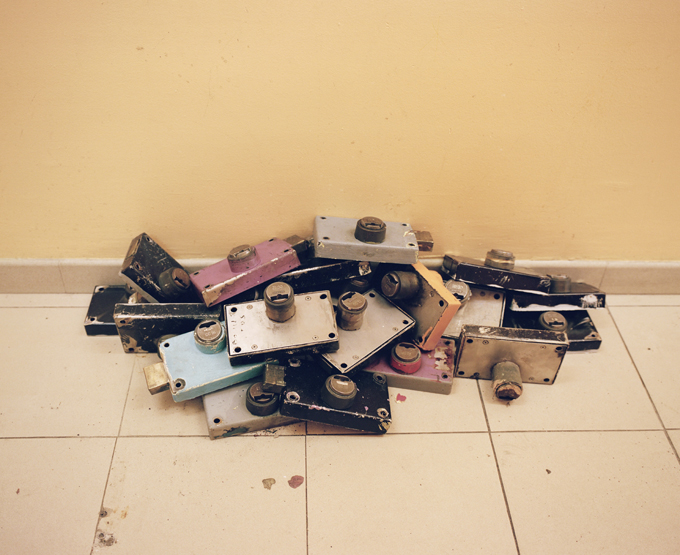 The photographs presented here are the result of a project [1] initiated by Isabelle Marseille, a psychologist with the French National Association for Prevention in Alcohol and Addiction Treatment (Association Nationale de Prévention en Alcoologie et Addictologie, ANPAA), who has been working with inmates in Beauvais for more than 10 years. The aim of the project was to leave a trace of the life experiences of inmates and the work experiences of staff, beyond the closure of the site. The initial objective was to produce a series of portraits of this varied group of users of the site; however, as quickly becomes evident when looking at the photographs, no faces appear in these pictures. A ban on photographing inmates’ faces was imposed by the local prison administration, despite the agreement of the individuals concerned. This constraint in itself testifies to the multiple privations contained within a contemporary prison sentence, which is no longer limited solely to the deprivation of liberty.