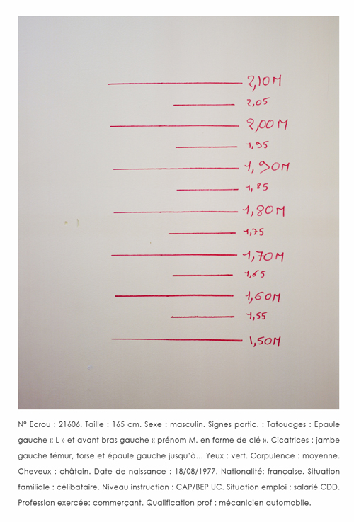 Every one of the photographs taken explores the presence of people in places, even when their bodies are absent: the walls and the handwritten height scale, inmates and staff (without faces), places of incarceration and places of work. Everything is deliberately intertwined. The absence of captions invites readers to work out where they are for themselves. Sometimes this is obvious; sometimes attention must be paid to small details in order to deduce the location.