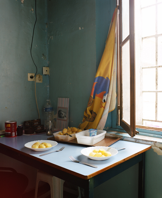 This series of photographs shows and is sensitive to the relationship to time and space, which plays a key role in forging the experience of prison. The aim is not to strive for an exhaustive description of places, things, and living conditions, but rather to constitute an object that is able to stand in its own right. The approach adopted is not didactic, but deliberately minimalist: there are no captions to guide the reader or explain what he or she should see or perceive. This economy of information seeks to place the emphasis on atmospheres and sensations. These images allow us to perceive aspects of the experience and materiality of prison that differ from, and in some respects complement, the accounts offered by the social sciences.