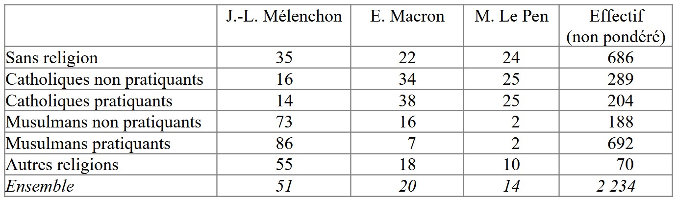 Une relation entre religion déclarée et vote, mais pas un « vote communautaire » !